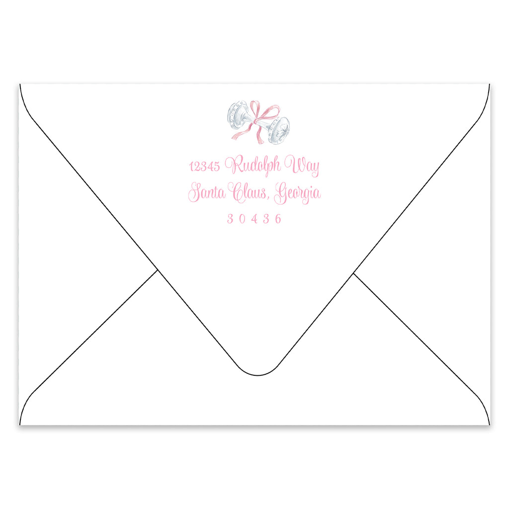 Merry Little Christmas Crest Holiday Photo Card Address Printing Add-On, Pink