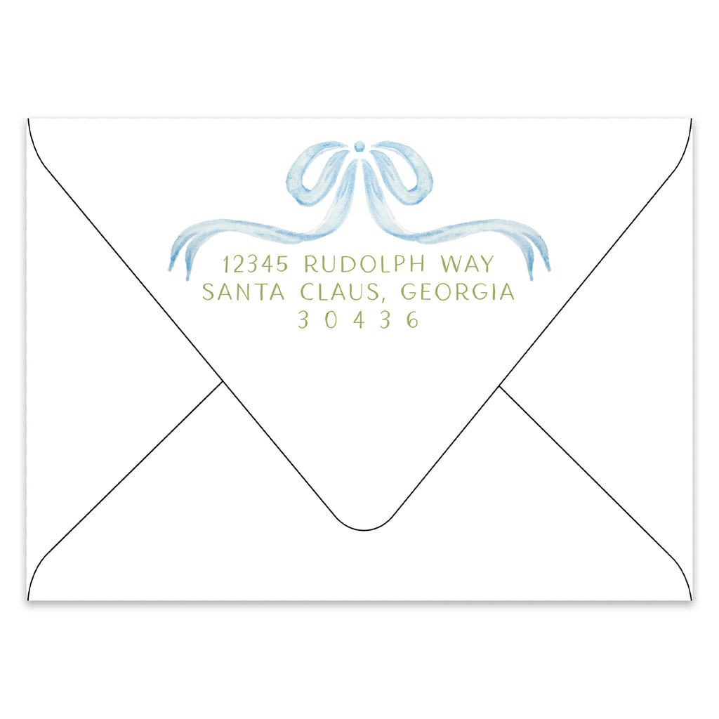 Tied with a Blue Bow Holiday Photo Card Address Printing Add-On